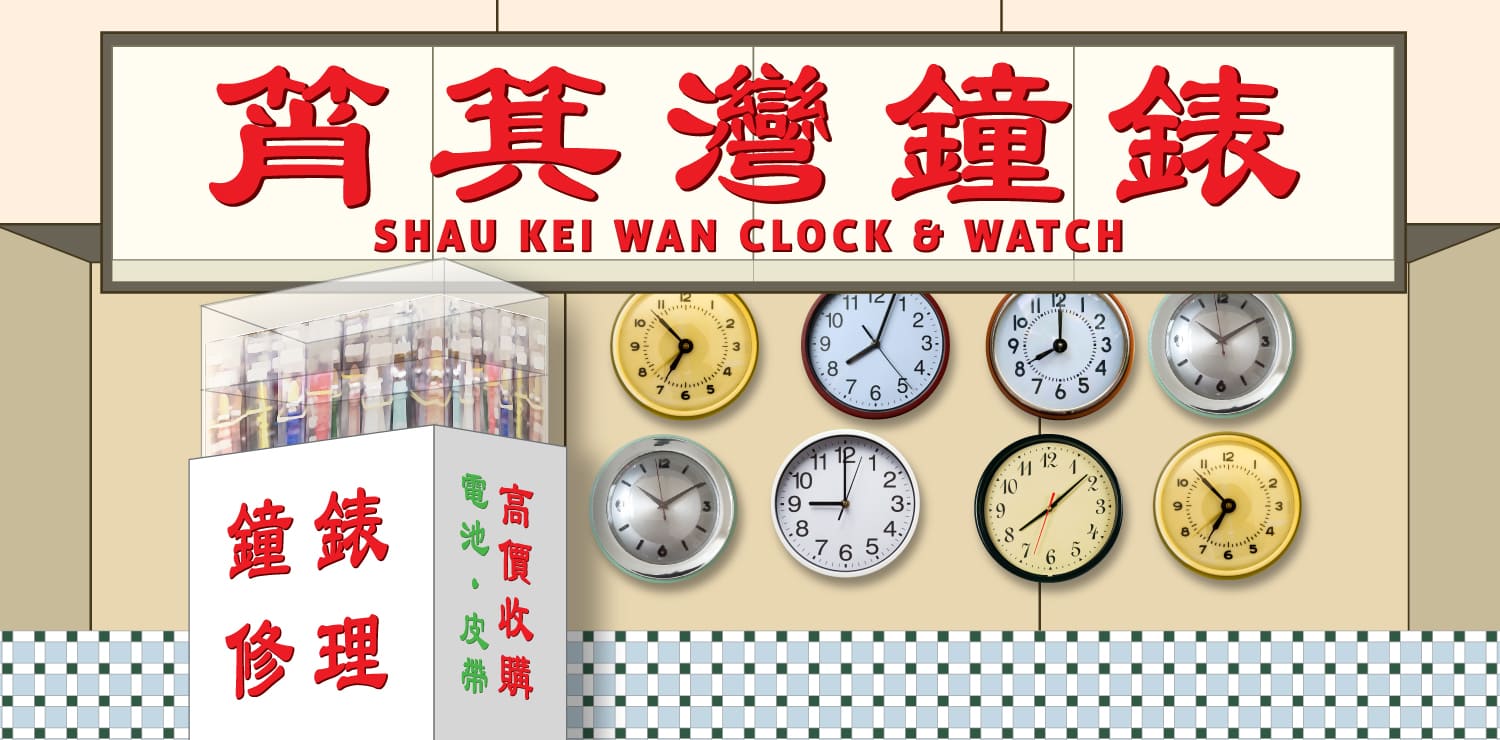 在筲箕湾旧街的唐楼转角,曾有一间以滴答声标记社区日常的钟錶维修舖。老师傅透过放大镜凝视齿轮与游丝,修復的不仅是停摆的时计,更是封存其中的约定与记忆。街坊在此交託怀錶、座钟等珍物,闲谈间交换生活点滴,使小店成为承载人情的时光胶囊。这种「修补而不弃置」的惜物哲学,体现了旧香港的价值观。随着城市变迁,这幅街景渐逝。港铁筲箕湾站遂以「动态保育」理念,将匠人精神与社区记忆重织于车站空间,「筲箕湾钟錶」主题角落便是这番深情的情境再造。